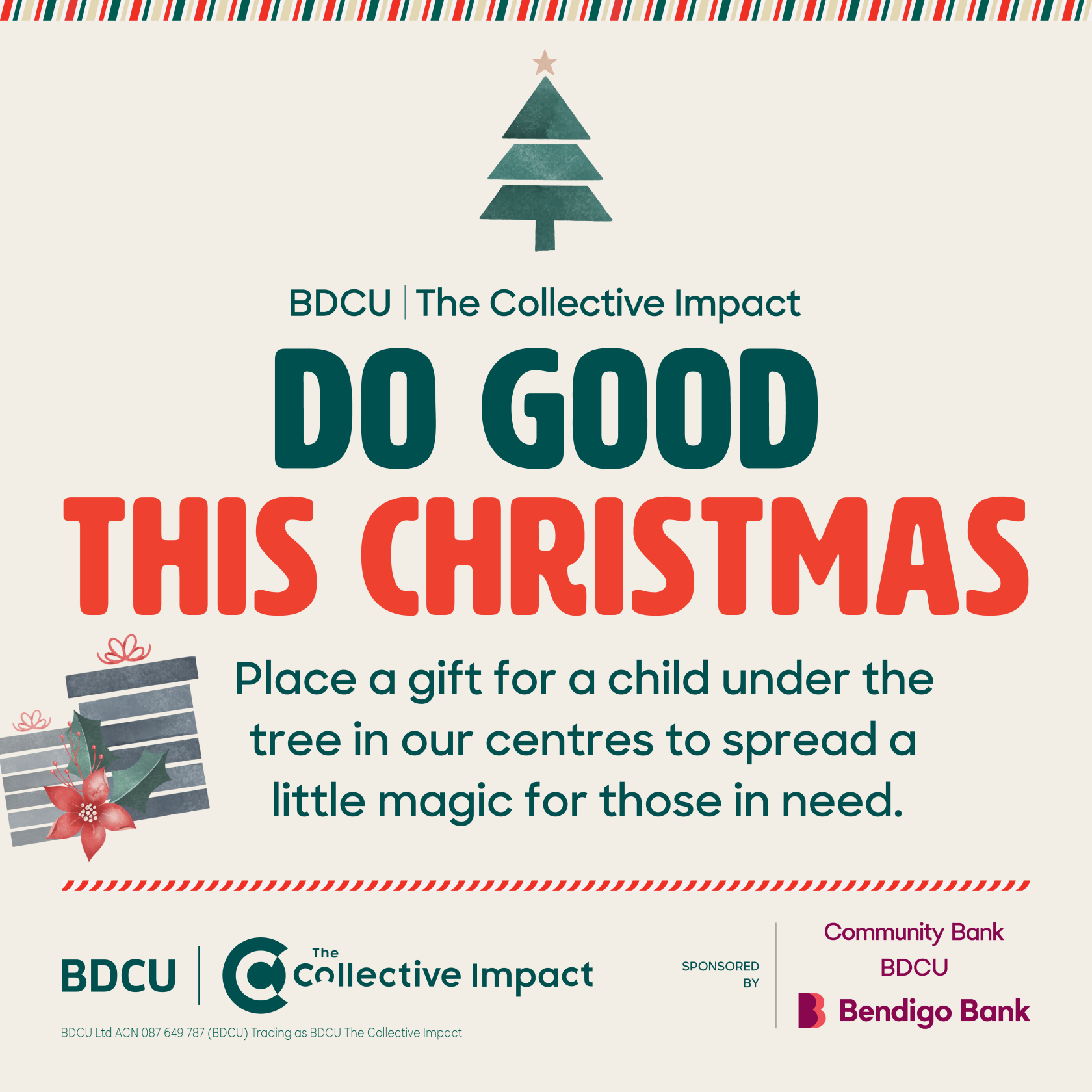 As part of our annual Do Good This Christmas appeal, we are currently collecting gifts for children of all ages - babies through teens. If you're in a position to do so, please place your unwrapped donation under the giving trees at the Community Bank BDCU branches in Bowral, Moss Vale or Goulburn.