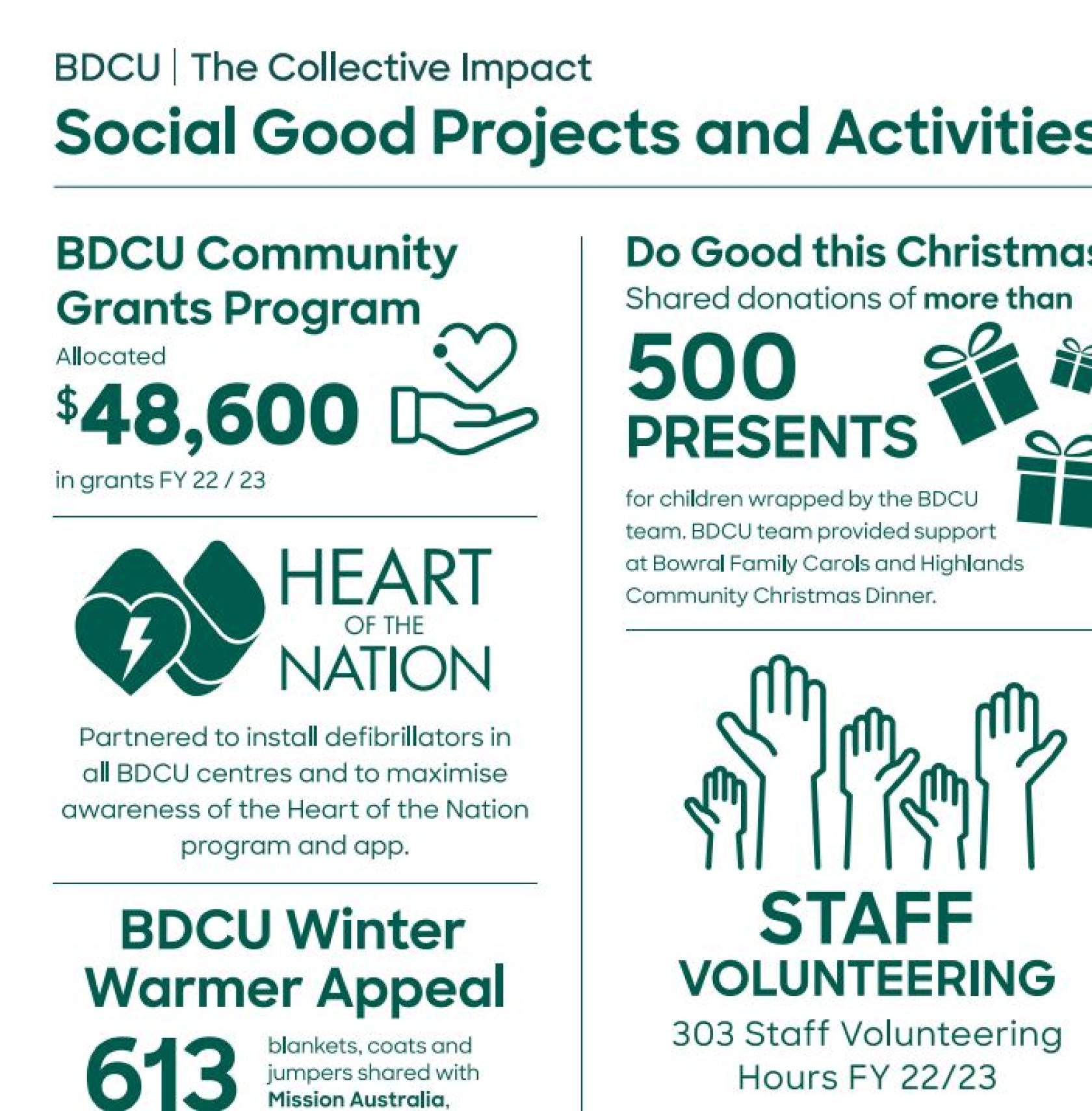 BDCU - The Collective Impact provides a social outcome in supporting sustainable face to face banking services in our regions but we also do so much more.